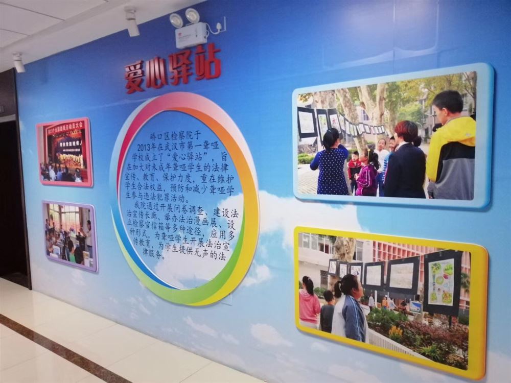 硚口區(qū)檢察院于2013年在武漢市第一聾啞學(xué)校成立了“愛(ài)心驛站”,旨在加大對(duì)未成年聾啞學(xué)生的法律宣傳、教育、保護(hù)力度,重在維護(hù)學(xué)生的合法權(quán)益。預(yù)防和減少聾啞學(xué)生參與違法犯罪活動(dòng)。我院通過(guò)開(kāi)展問(wèn)卷調(diào)查、建設(shè)法治長(zhǎng)廊、舉辦法治漫畫展、設(shè)立檢察官信箱等多種途徑。應(yīng)用多種形式,為聾啞學(xué)生開(kāi)展法治宣傳教育。為學(xué)生提供無(wú)聲的法律服務(wù)。