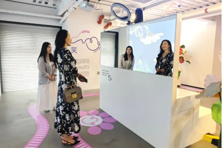 站在鏡子面前微笑,花朵將隨你的笑容一起綻放......“越笑越美”本設(shè)備借助面部表情識別技術(shù),參與者可以透過鏡子的反射感受動(dòng)態(tài)畫面的“蘇醒”。笑得越燦爛,畫面中的花朵就會越受“感染”,綻放得更為絢爛。如果多個(gè)朋友共同參與,花朵將根據(jù)人數(shù)和笑容的深淺變得更加豐富多彩。